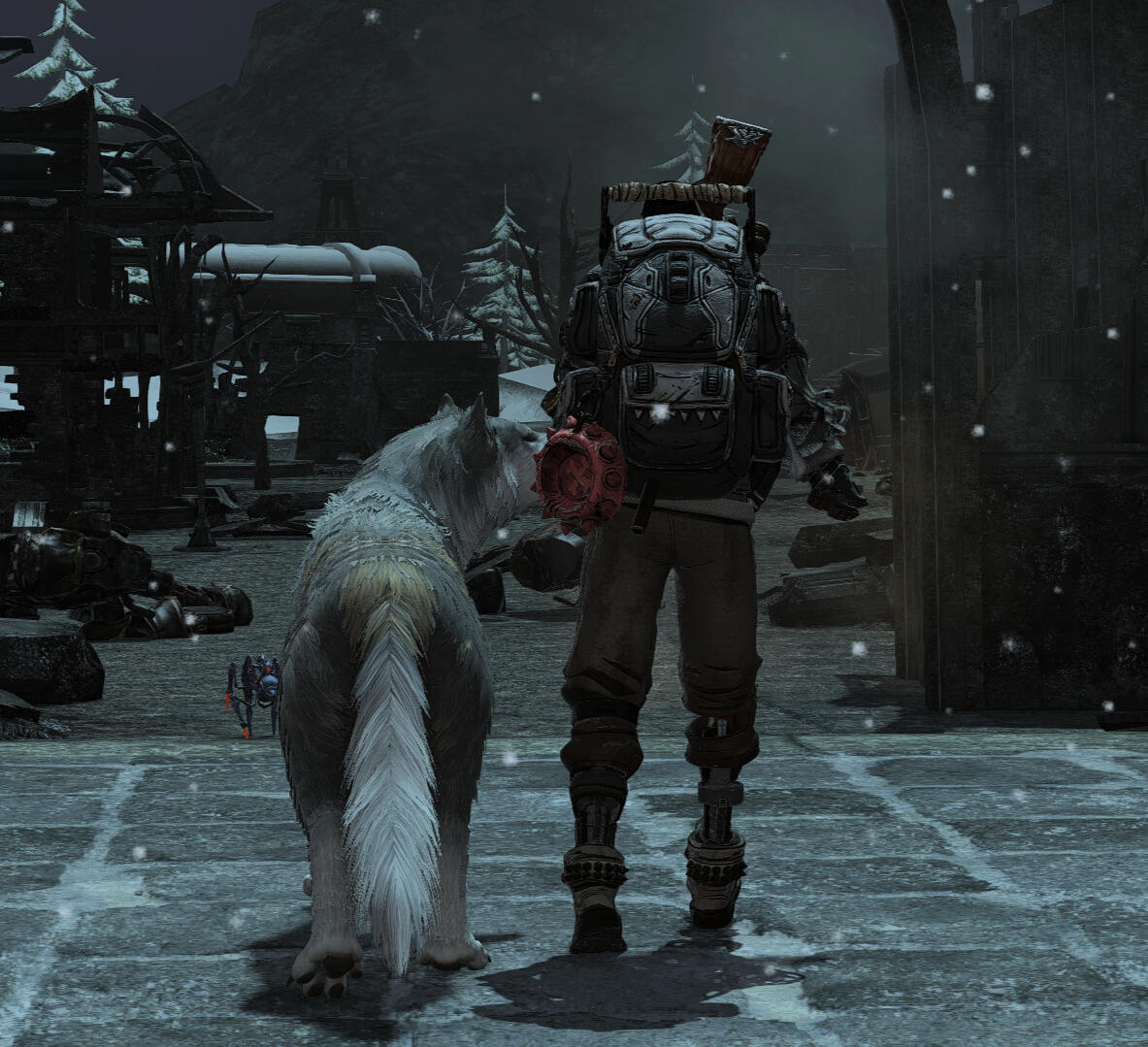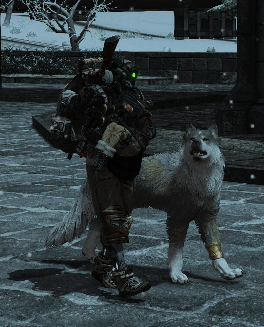 "Unlike the rest of my Garlemald companions, Escharum is not from Garlemald. I had a fateful encounter with this majestic, fearsome beast in the Near East. During my travels, we first me when he wasn't such an intimidating fellow. Unbeknownst to me, the bounty I was hunting in the Near East region, happened to have been an illegal poacher. Capturing animals of various species. From Opo-opos to Tigers and Lions. After having put the bounty and his associate's foolish ambitions to rest, I liberated the captured creatures and among them, was a parentless cub. Naturally, I couldn't have just let it go into the wild without having the slightest idea of how he would survive without guidance...Escharum is possibly my most dangerous comrades here in Garlemald. Much like Chip, Escharum is a natural predator of nature. The most merciless predator amongst my pack, Escharum will shred and rip through my foes as if they were mere ragdolls being shaken around and ripped apart. With the battle armor I have adorned my friend with, Escharum makes for an intimidating foe that does not flinch, stagger or hesitate. Always taking his foes head on. It would be in the interest of others to keep out of his way, lest they become his free meal, and it won't be a slow death either. Every bone crushing bite will be felt until you grow unconscious..."