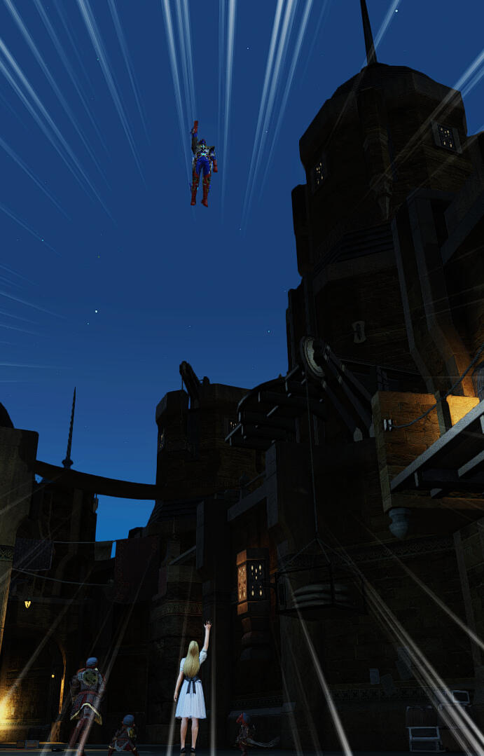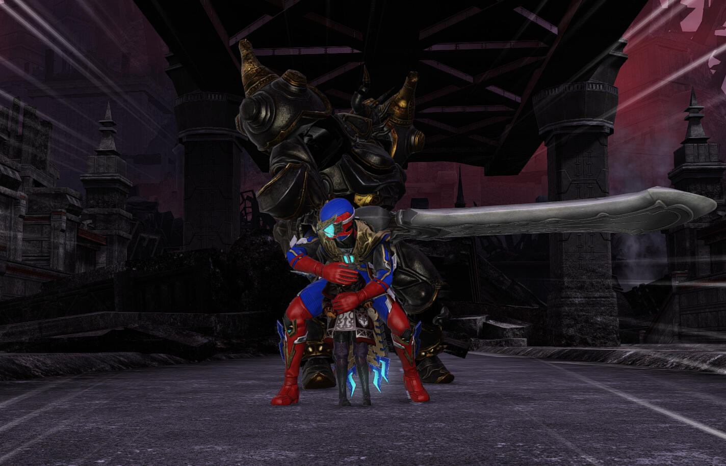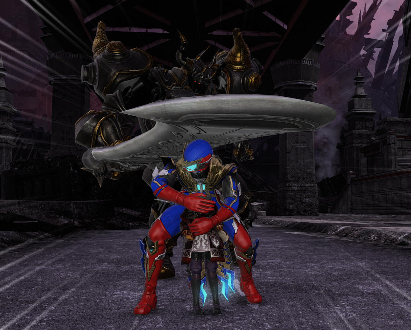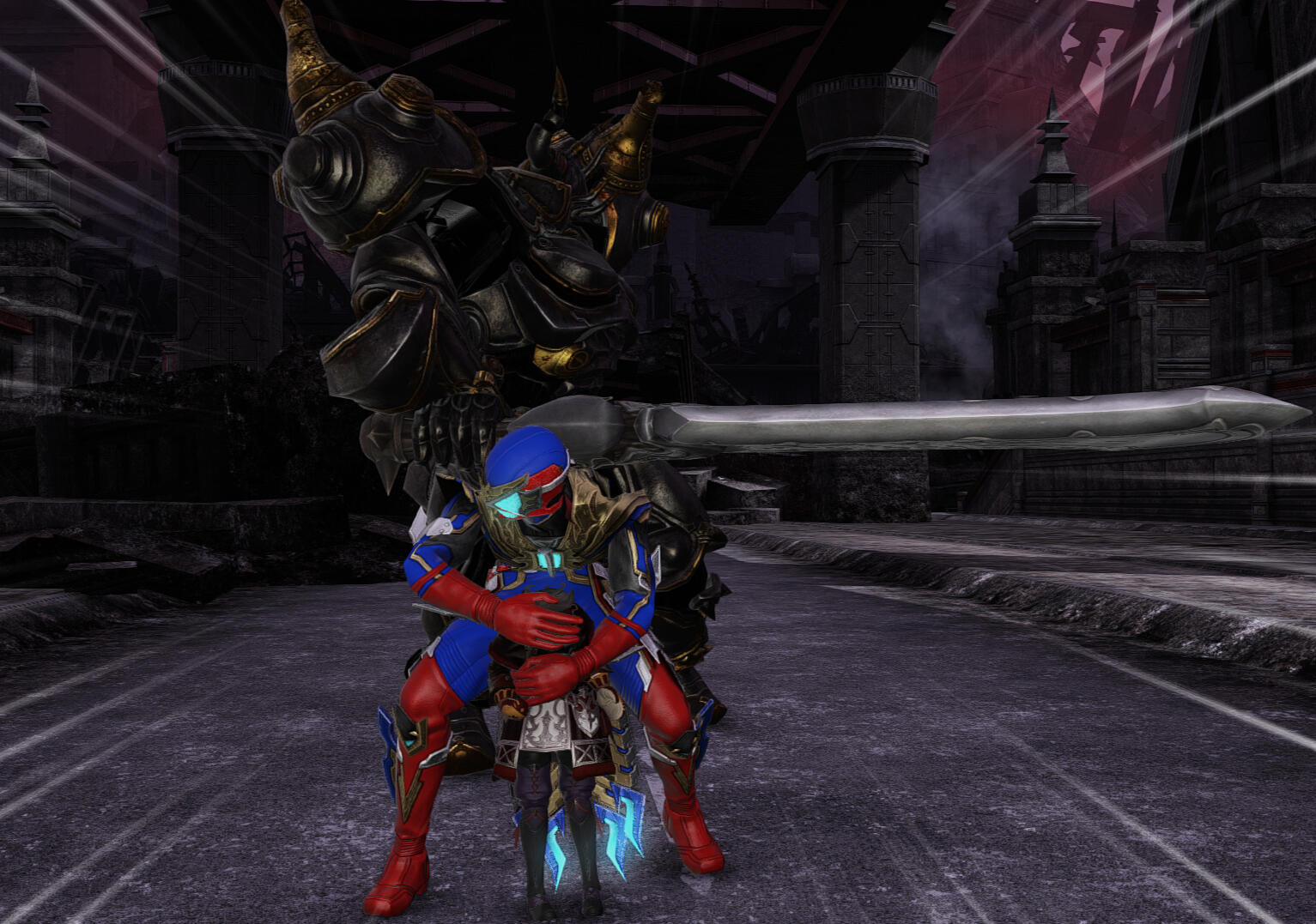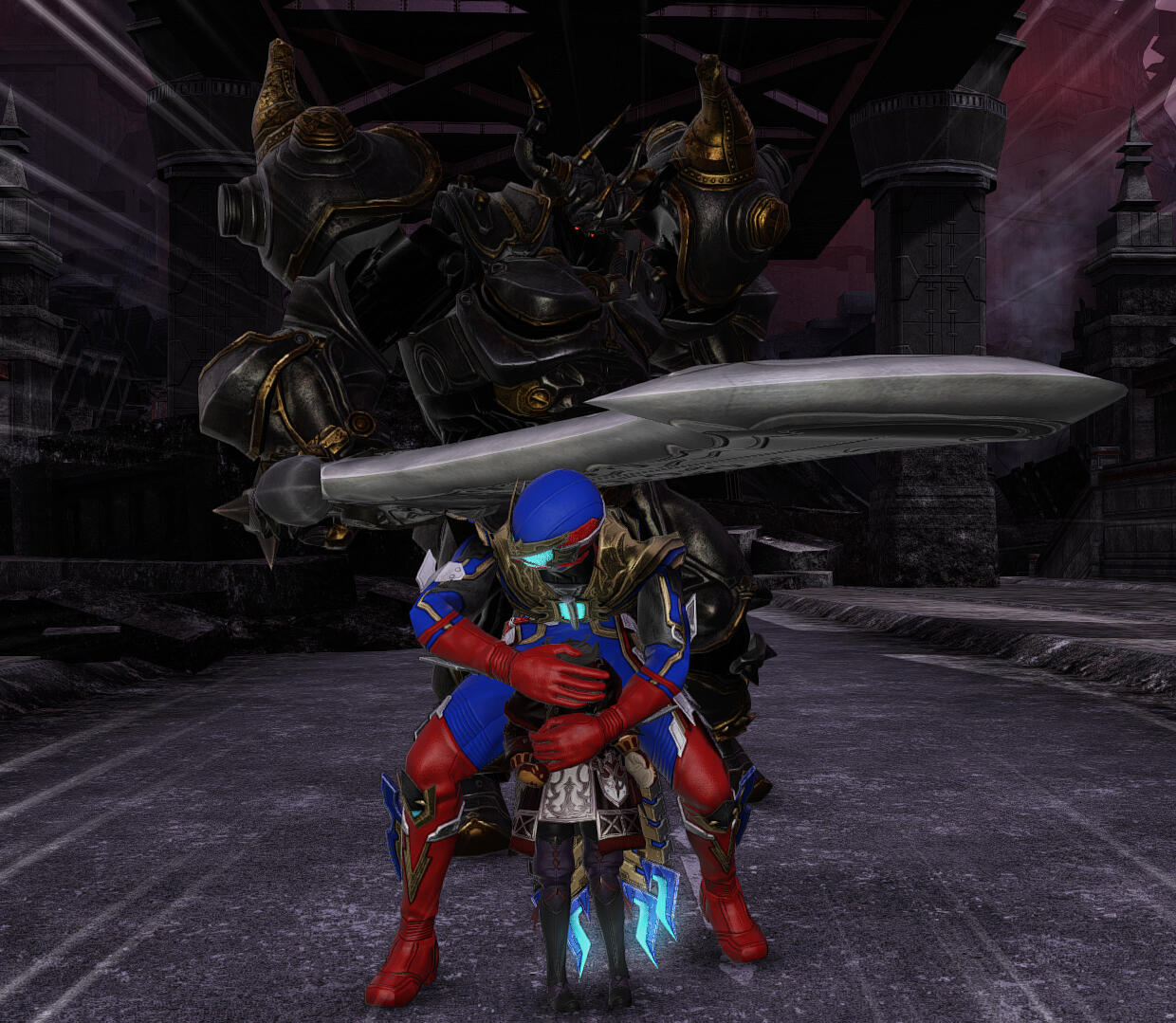 "Garleans throughout Tertium have heard passing tales of the one in blue and red. But to those unfamiliar, allow me to share a little of this tale. Little Luciana once found herself in an undesirable and unfortunate position while out scavenging in the ruined capital of Garlemald. Caught by a rogue patrolling automated colossus, she had no where to run to, hide or in her arsenal to take on such a threat. It was then that I heard the screams and cry for help under the overpass. And came to her aide, just as anyone else would have I am sure. But, I was there. In the right place. At the right time. And if I have the power and ability to help others... Then shouldn't I do it? So, that's what I did. I stepped up where nobody else could or couldn't."