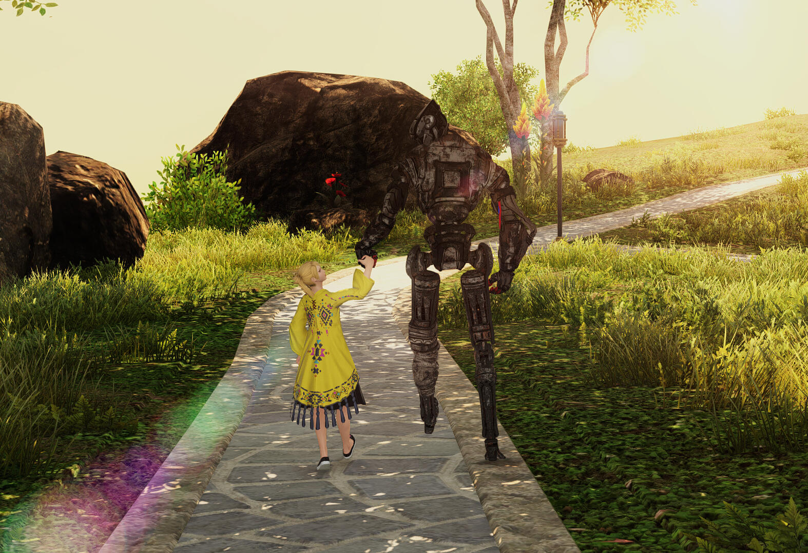 "Three years ago, my sister and I looked for areas that would be safe. Safe for me and her and our beastly friends. Upon searching such a remote place, we discovered the lonesome island in uncharted seas. Deciding this once lonely island to be our sanctuary and home for our beloved animals and a place for us to retreat when we needed to. And over those three years, my sister and I worked tirelessly to rebuild this island to make it our own.Salvaging every piece of material we came across from Garlemald and into the magitek whale, we made constant trips back and forth, until the island was fully fortified, equipped and suitable for living. Thus, the simple yet fitting name of our island became our Paradise. The Iris Sanctuary. A paradise sanctuary that is far from society of the Spoken. And because of that, we choose to keep its location hidden and uninvited for Spoken, this is our new home, where we can be left alone and thrive along side our companions and comrades."